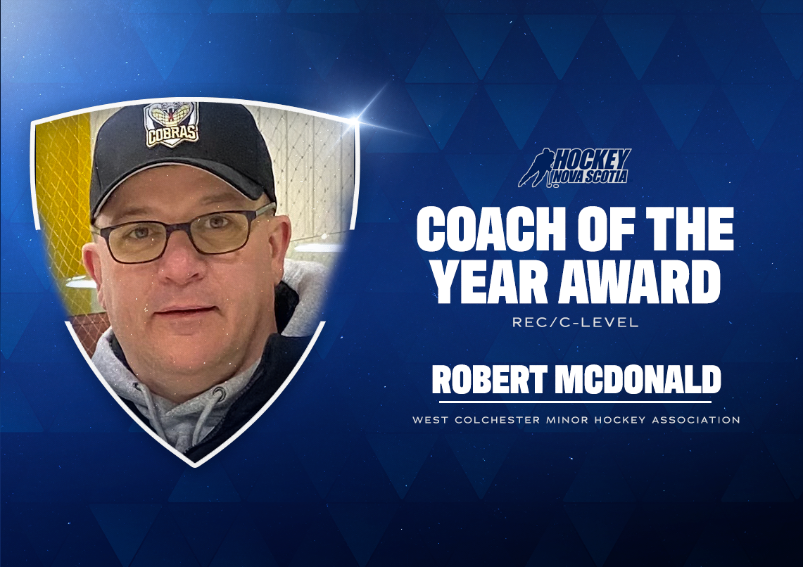 Hockey Nova Scotia is proud to announce that the West Colchester Minor Hockey Association’s Robert McDonald is the winner of our 2023 Coach of the Year Award (Rec/C-Level).